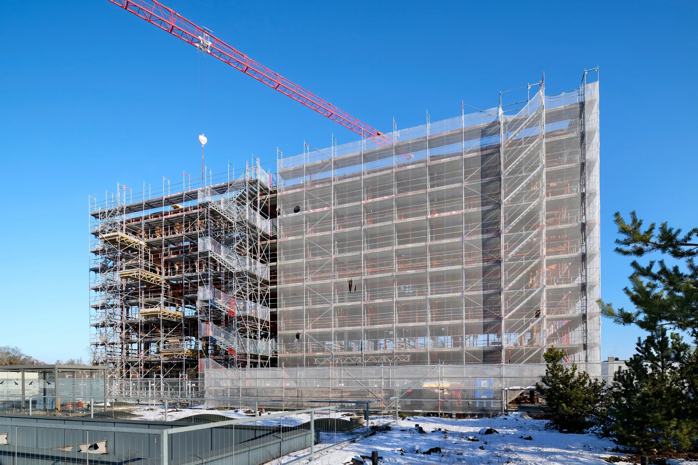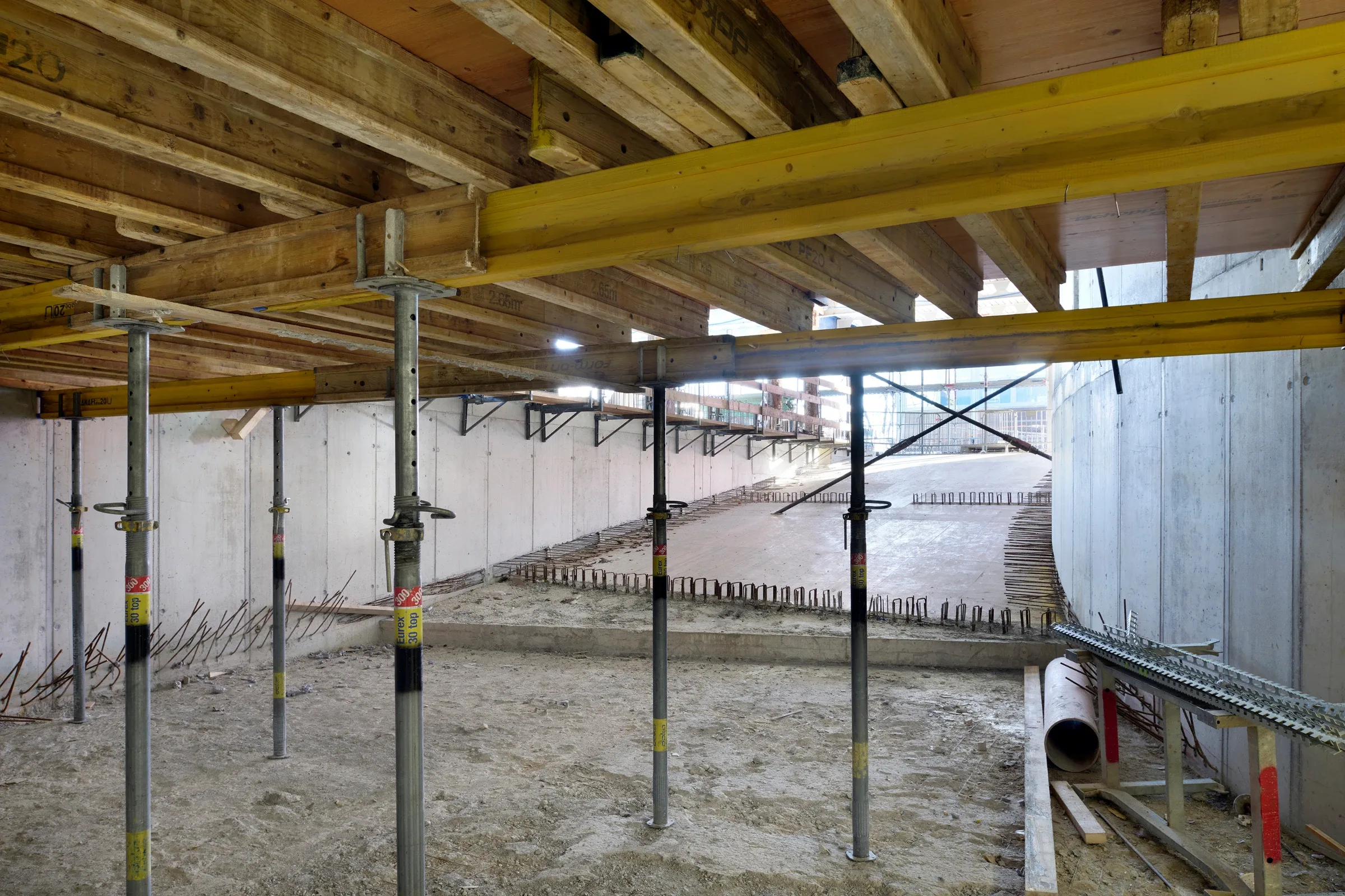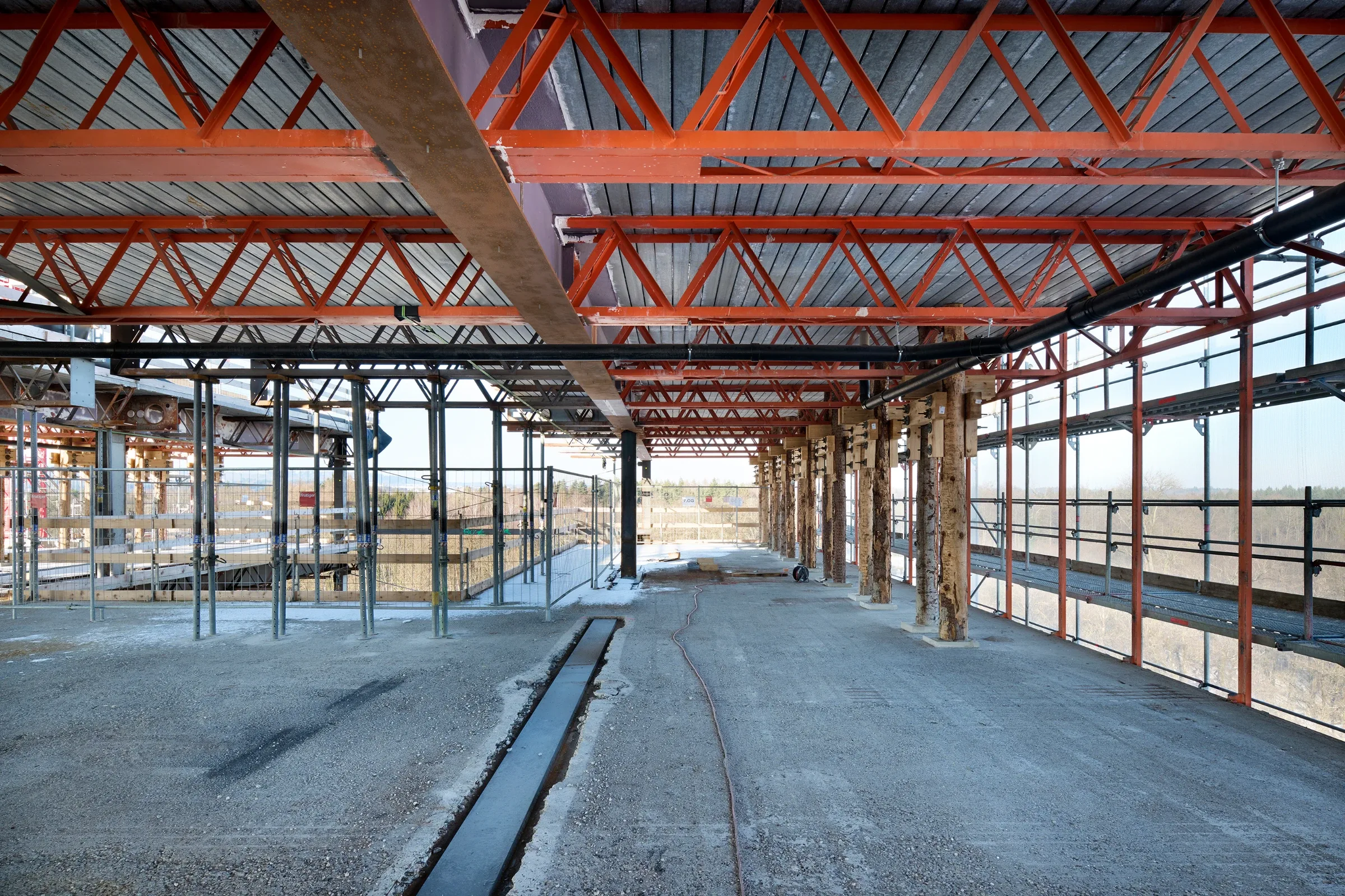 Die Aufstockungen mit Wohnungen auf dem Sockel im Norden und im Westen sind als Holzkonstruktion vorgesehen, sowohl Aussenwände als auch Innenwände und Decken.