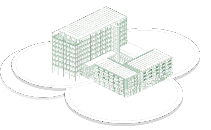 In der Transformation des Gebäudes achtet die Bauherrschaft sehr stark darauf, auf dem Bestand aufzubauen. Der Turm wird erhalten, erweitert und saniert, seine Höhe bleibt gleich. Der Sockel und die darauf entstehenden drei zusätzlichen Etagen bieten Platz für ein vielfältiges Wohnangebot – so vielfältig wie auch die Bewohnerinnen und Bewohner sein sollen: Ihr Mix wird der Schlüssel zu einer nahtlosen Integration von U8 in die Nachbarschaft sein.